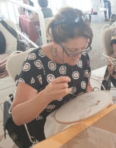 Sono insegnante di ricamo da più di 15 anni, in Calabria, sul territorio italiano ed all’estero. Dal 2019 faccio parte della Corporazione delle Arti, associazione nazionale di categoria degli insegnanti di Arti di Filo, di cui sono rappresentante regionale.